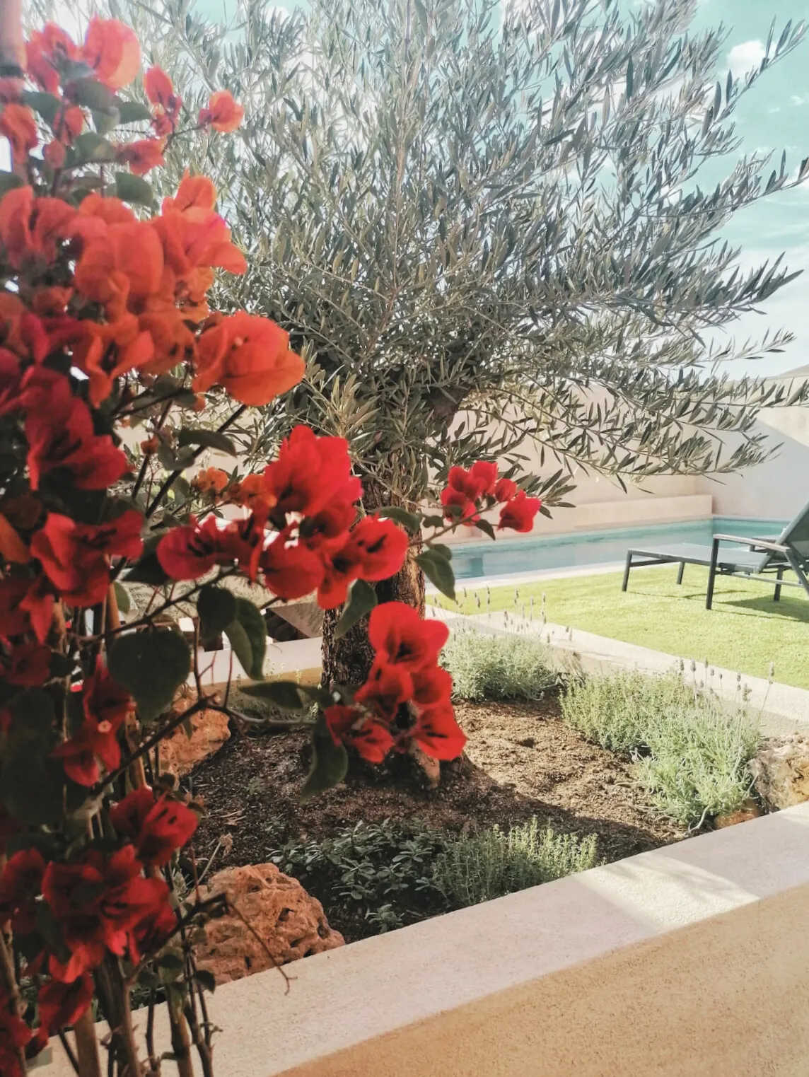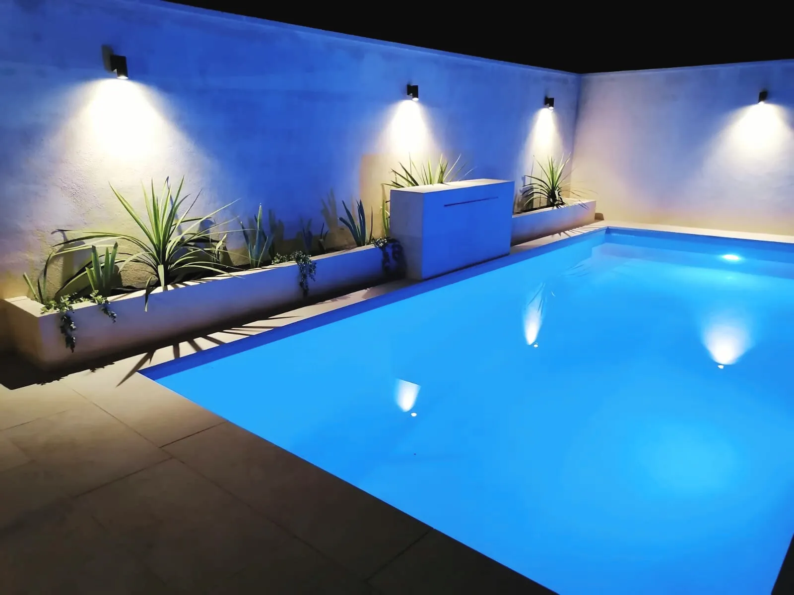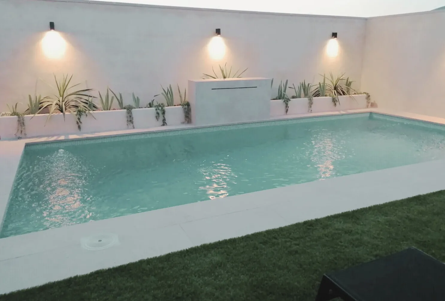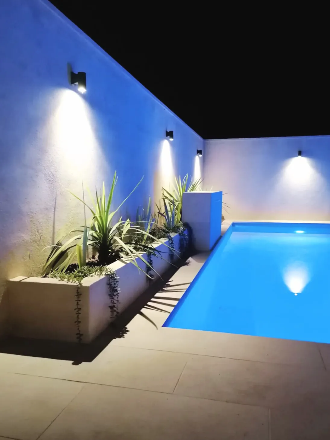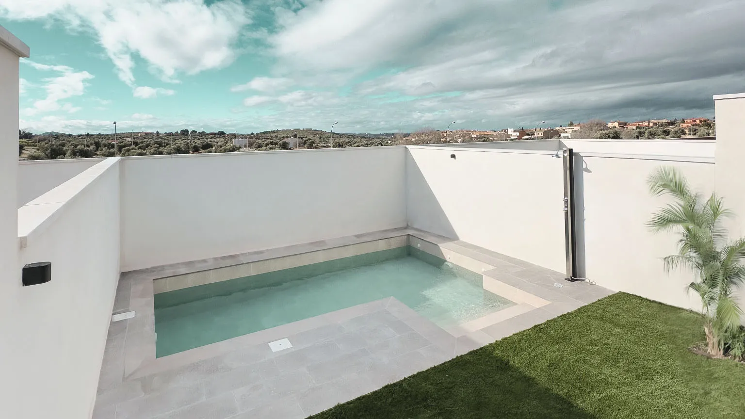 Tipo de proyecto: Patio exterior con piscina, jardineras, solado y muro.